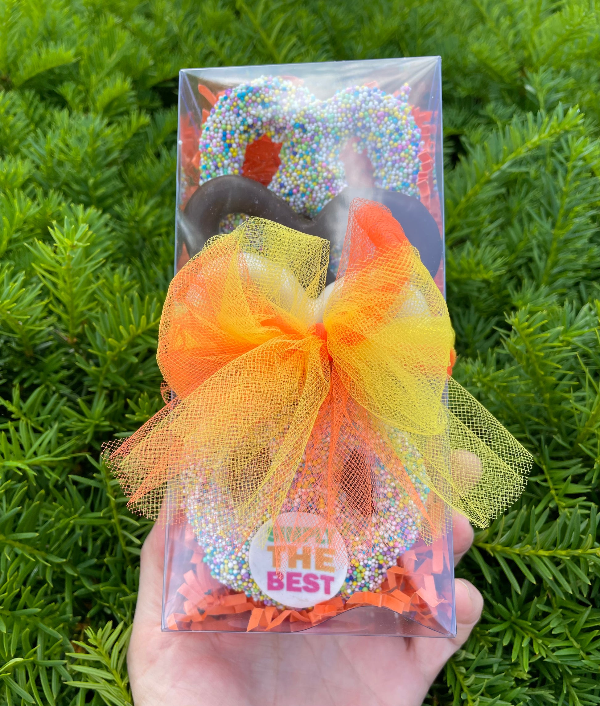This beautifully wrapped pretzel box is a wonderful way to say thank you, have a great day, or show your appreciation for just about anyone with its edible image that says Simply The Best! Made with the finest ingredients, this gift box is beautifully packaged and includes a variety of 5 delicious pretzels, milk, dark, white, nonpareils & sprinkles.